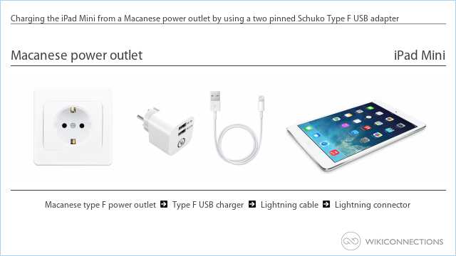 - If you want to power the iPad Mini using the Macanese power outlet you will need to use a Type F USB power plug adapter [9] and a USB to Apple Lightning cable [5] (Apple usually include this USB cable with the iPad Mini).