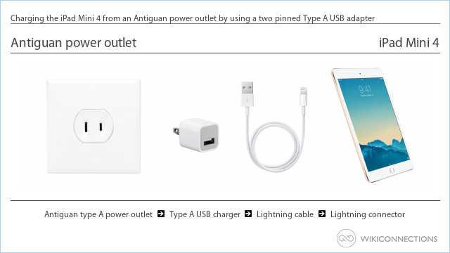 - In order to charge your iPad Mini 4 using an Antiguan power outlet you will need to buy a Type A USB power plug adapter [4] and a USB to Apple Lightning cable [5] - Apple should typically include the USB cable when you first purchase the iPad Mini 4.
